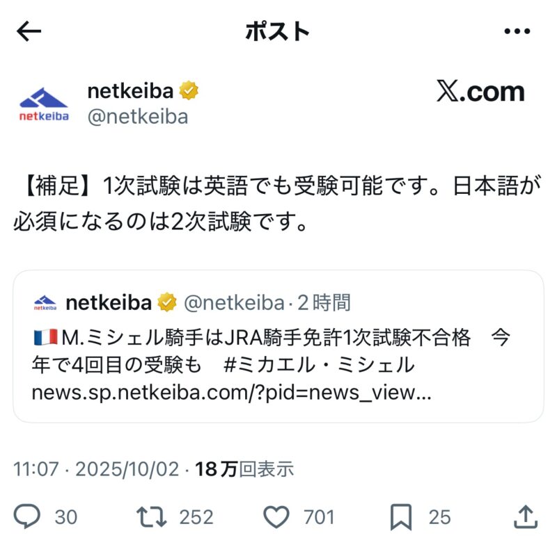 調教師免許が超絶難易度なのは分かるが、騎手免許をそんなに難しくして意味あるんだろうか